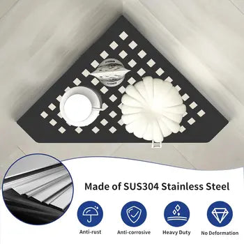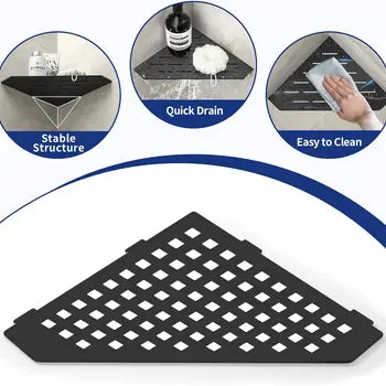 Deze hoekdouchegarderobe is ideaal voor het opbergen van shampoos, zeep en andere badkamerartikelen. De matt zwarte afwerking en roestvrijstalen constructie zorgen voor een moderne en duurzame look. Het product is eenvoudig te monteren en komt met een waterlekkagebeveiliging om lekkages te voorkomen. De hoekdouchegarderobe is gemaakt van hoogwaardig materiaal en heeft een lange levensduur.